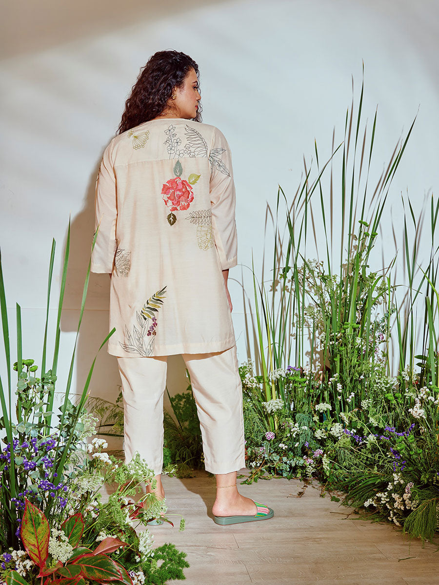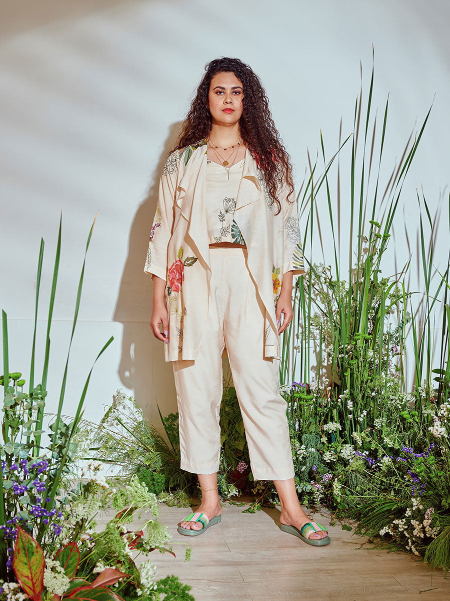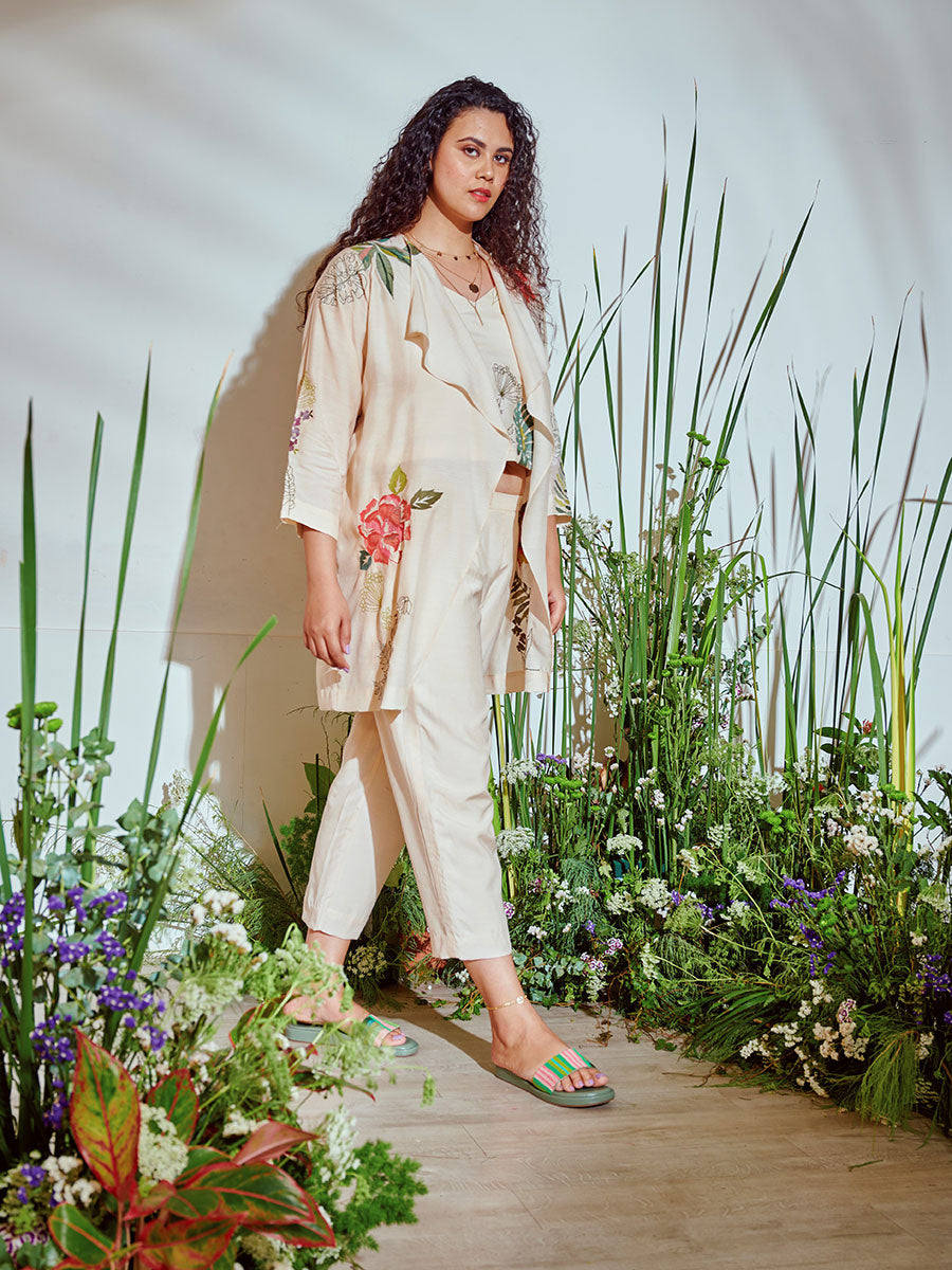 Inspired by a tropical garden, the intricate embroidery in pop hues evokes a spring summer feel. The co-ord set is relaxed and chic, styled with sneakers or slides, layered chains, it’s a must have in your holiday wardrobe.