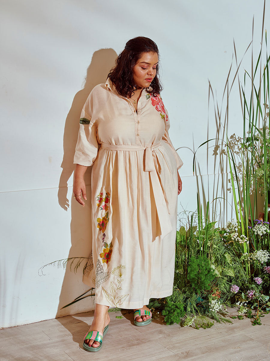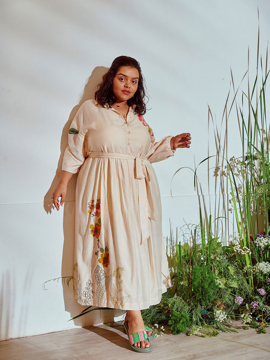 Holiday Florals Shirt Dress (White)