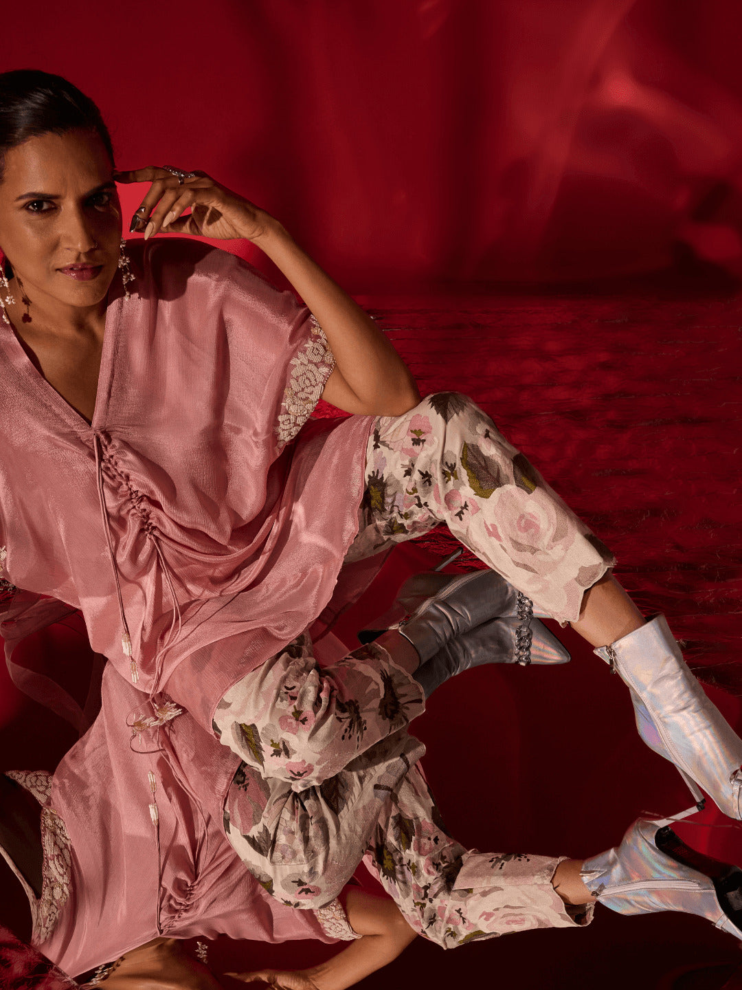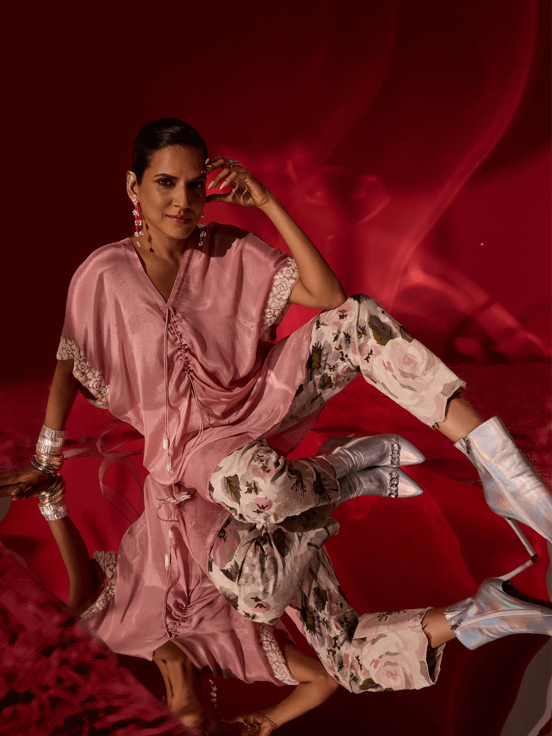 Pearl Rose Kaftan Kurta + Old Bloom Emb Pants