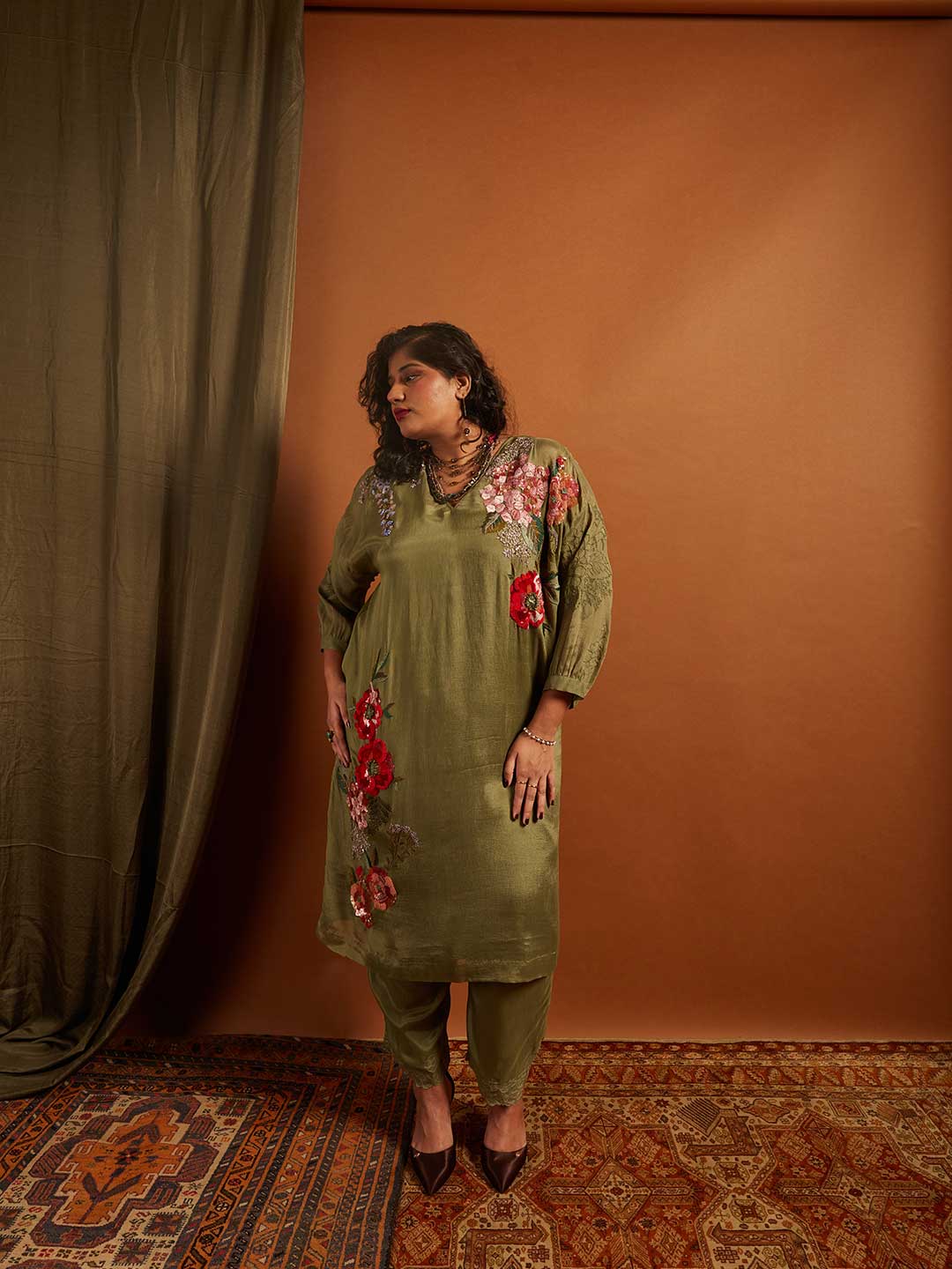 Hydrangea Emb. Drop Shoulder Midi + Pants