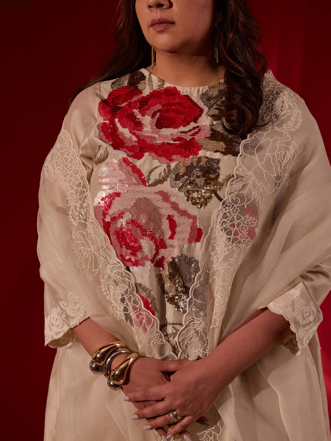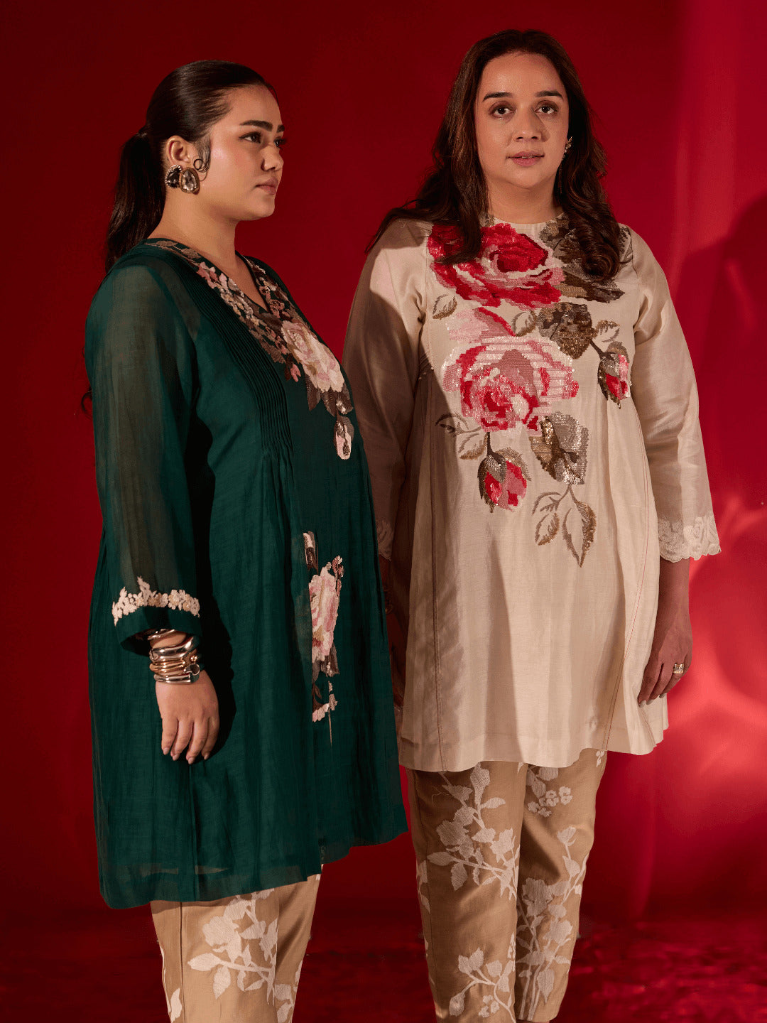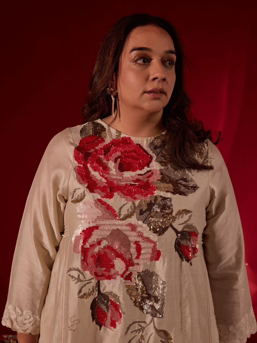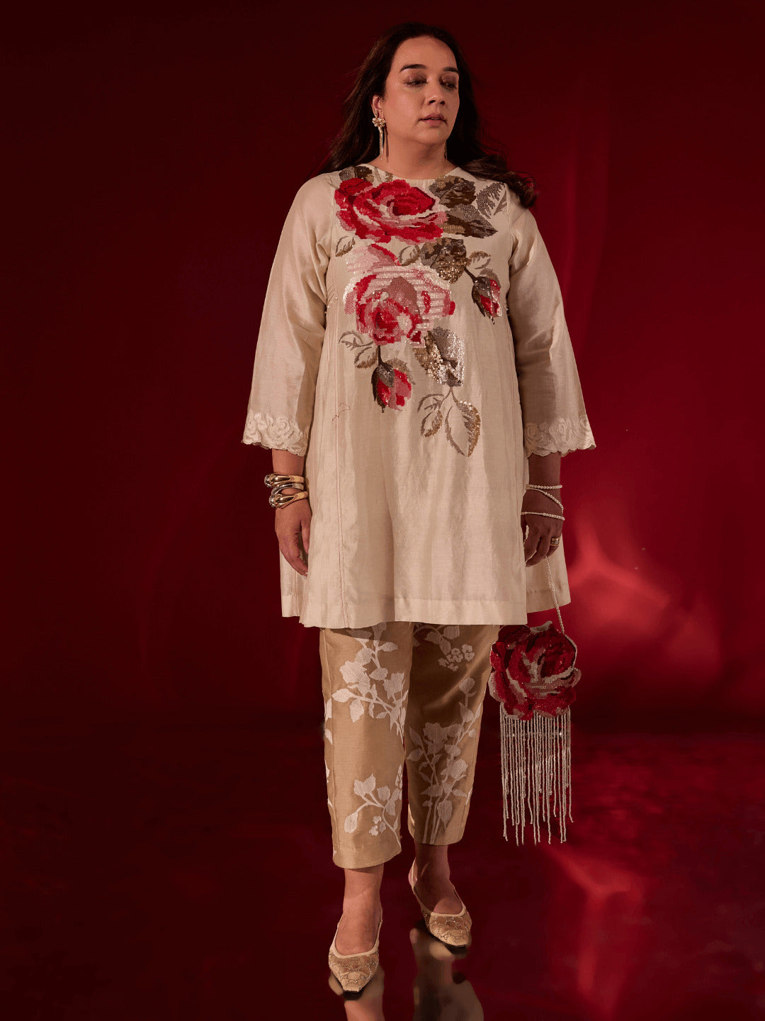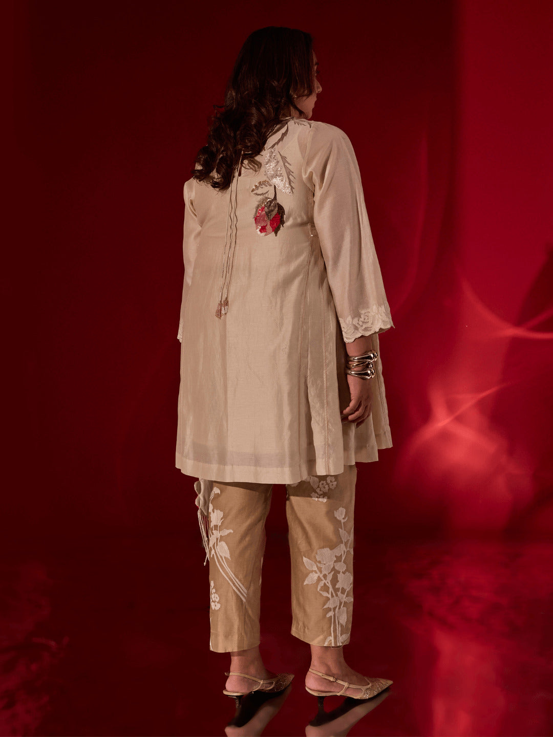 Old Rose Side Kali Kurta + Thread Emb Pants