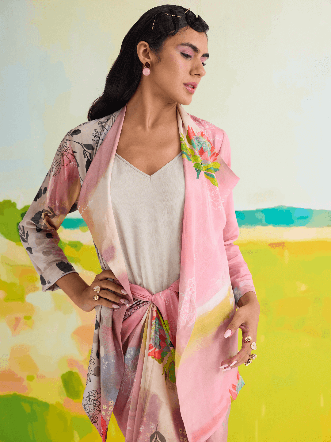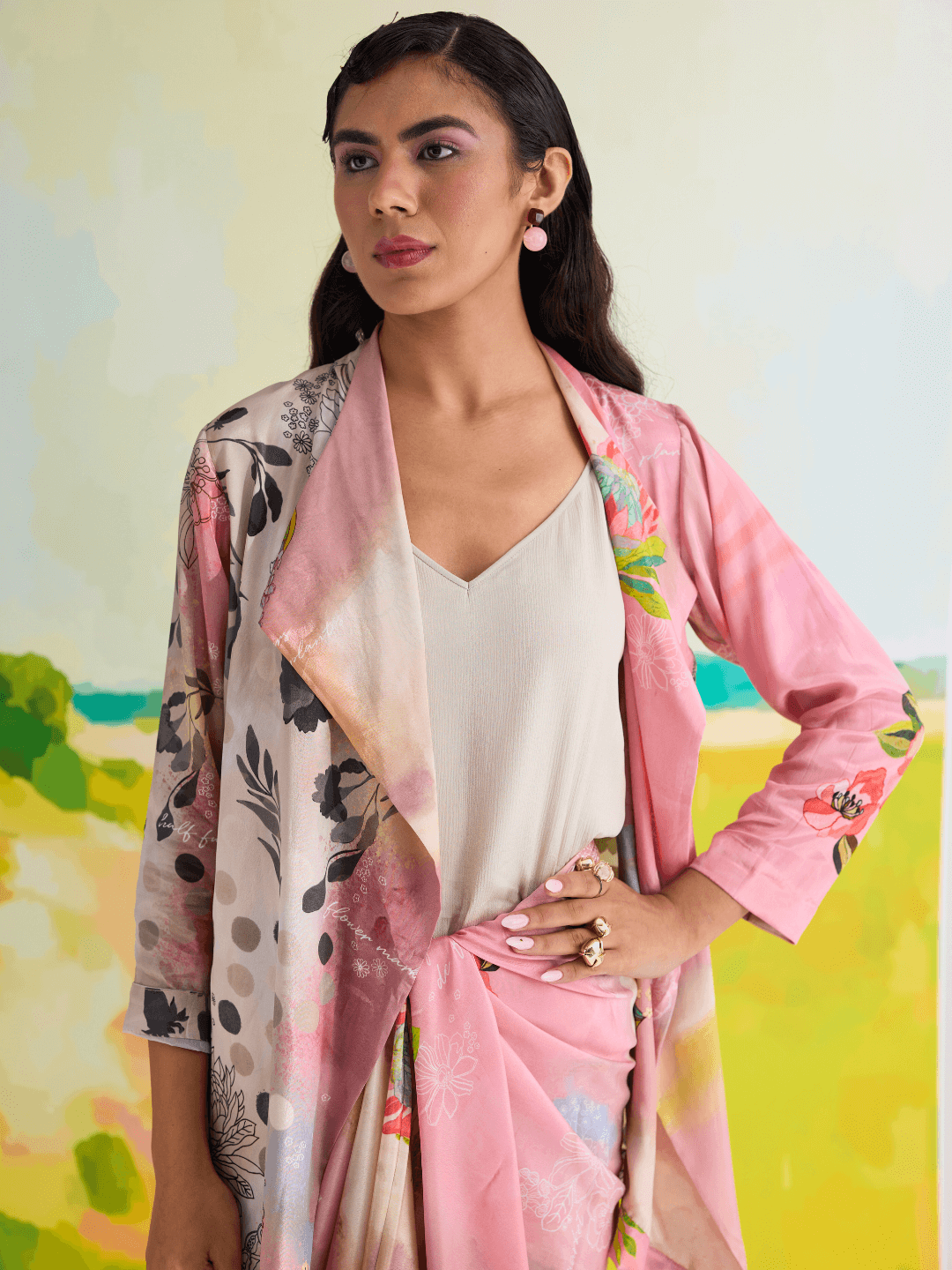 Pink Poetry Drape Skirt + Overlay Set with Singlet