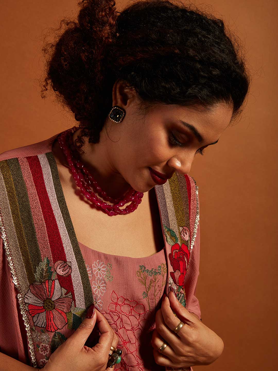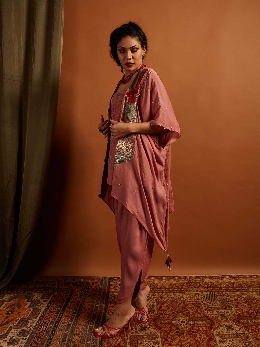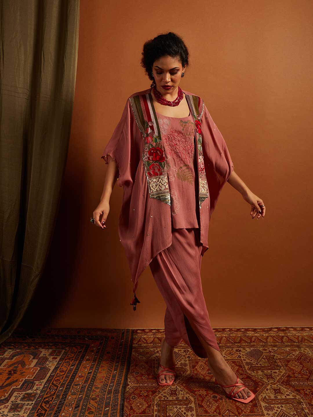 Rose Emb. 3 Pc Co-ord Set (Pink)