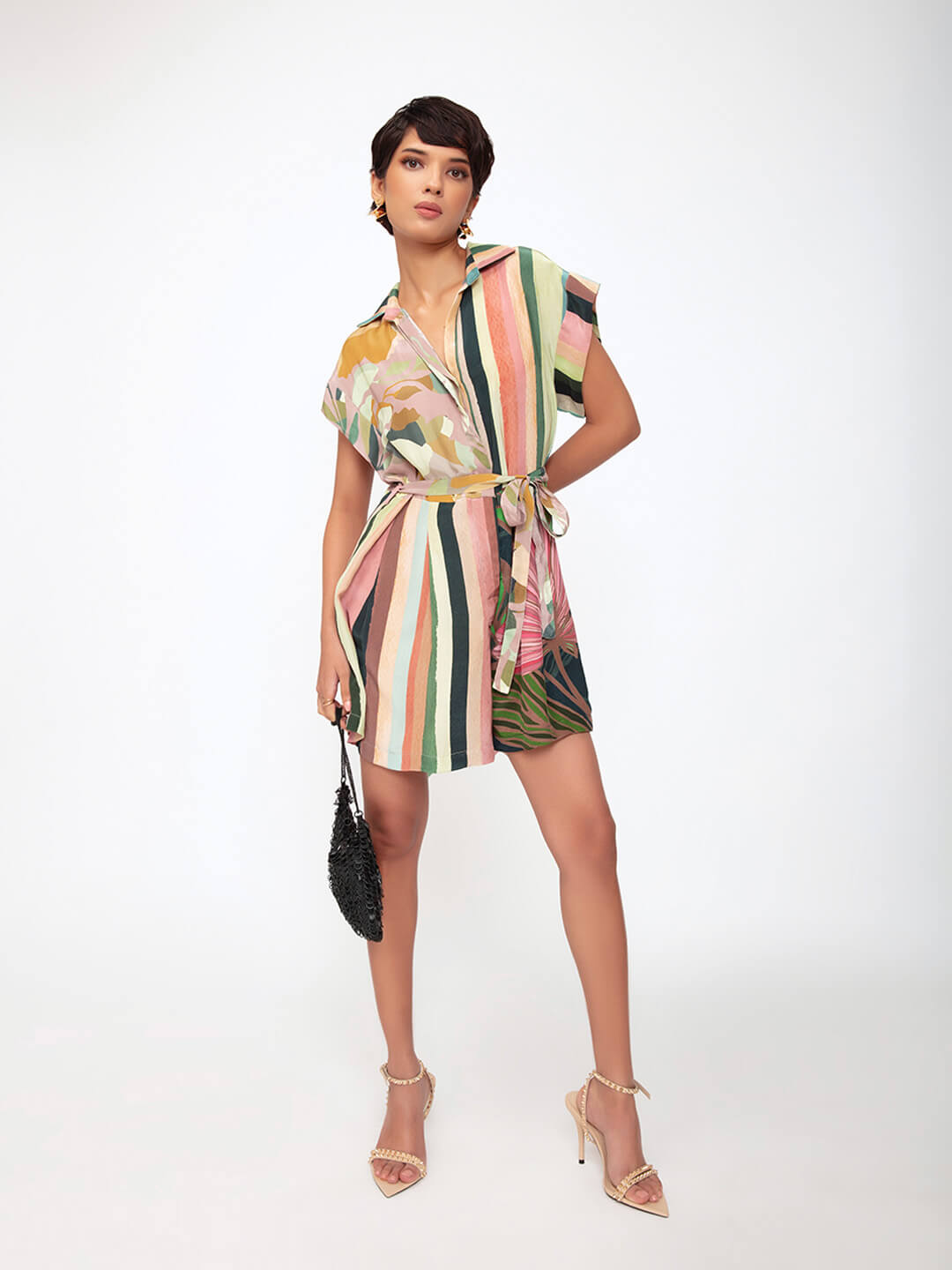 Details: The playsuit has lining in the shorts part, and has a separate belt to adjust the waist.