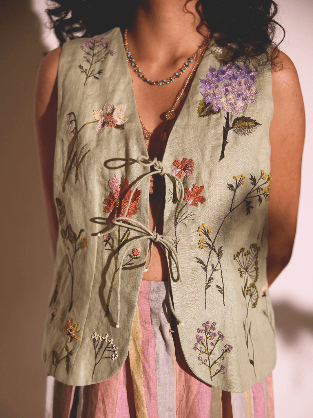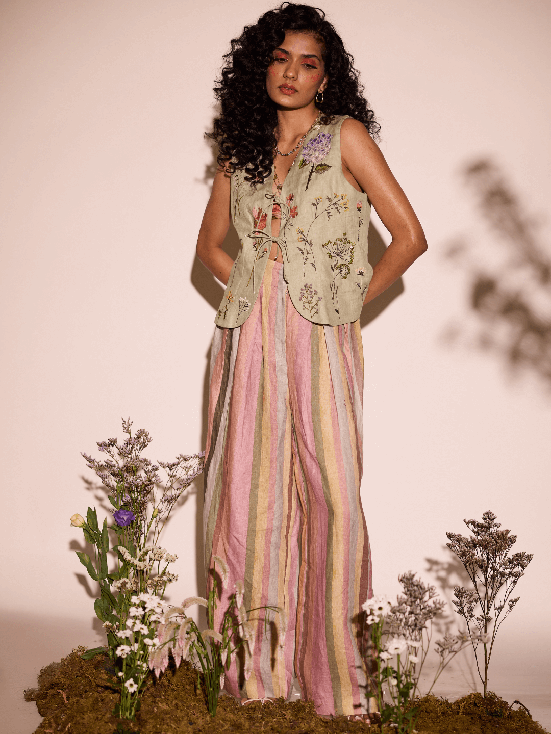 Wildflower Emb Vest + Stripe Pants