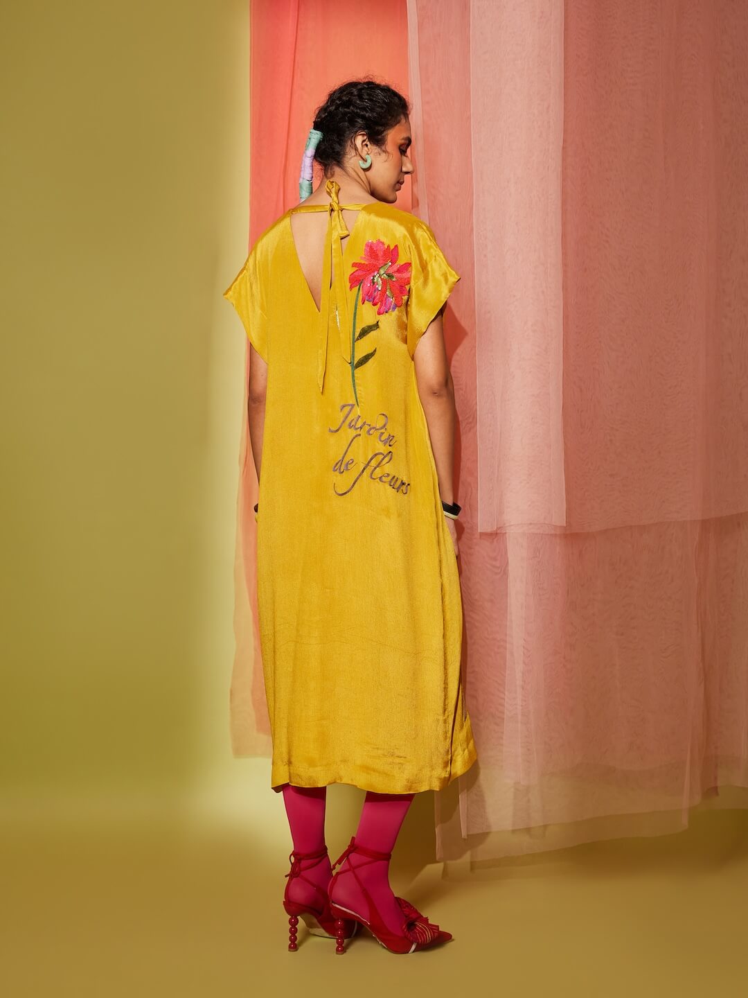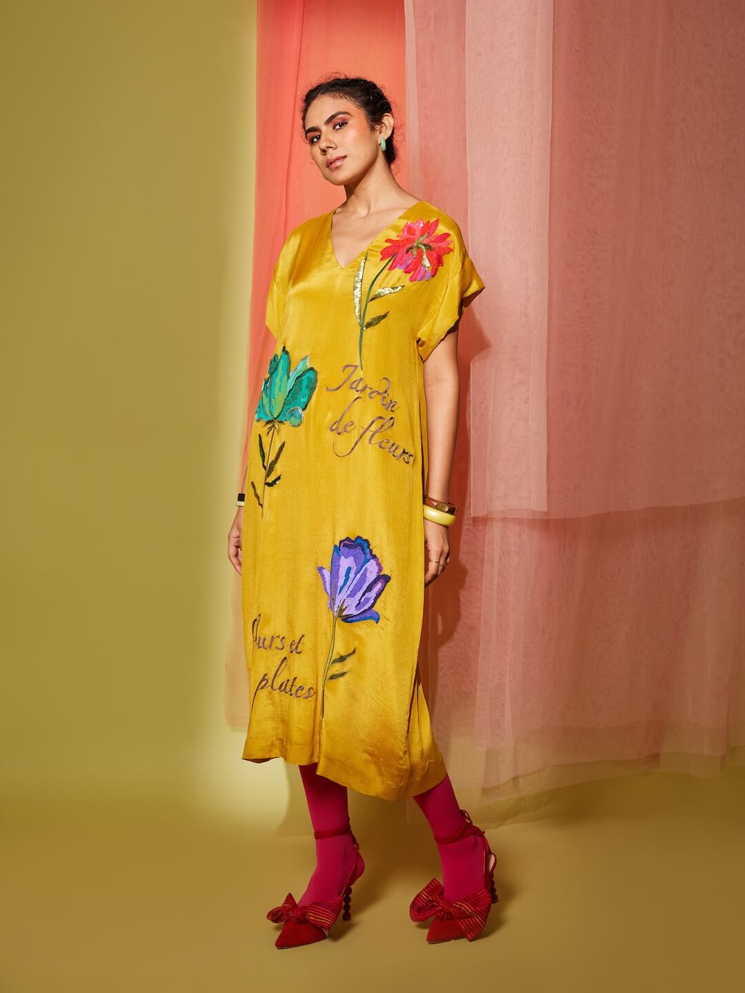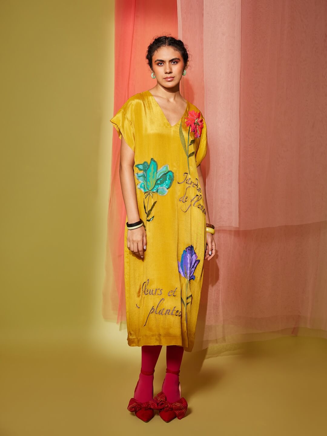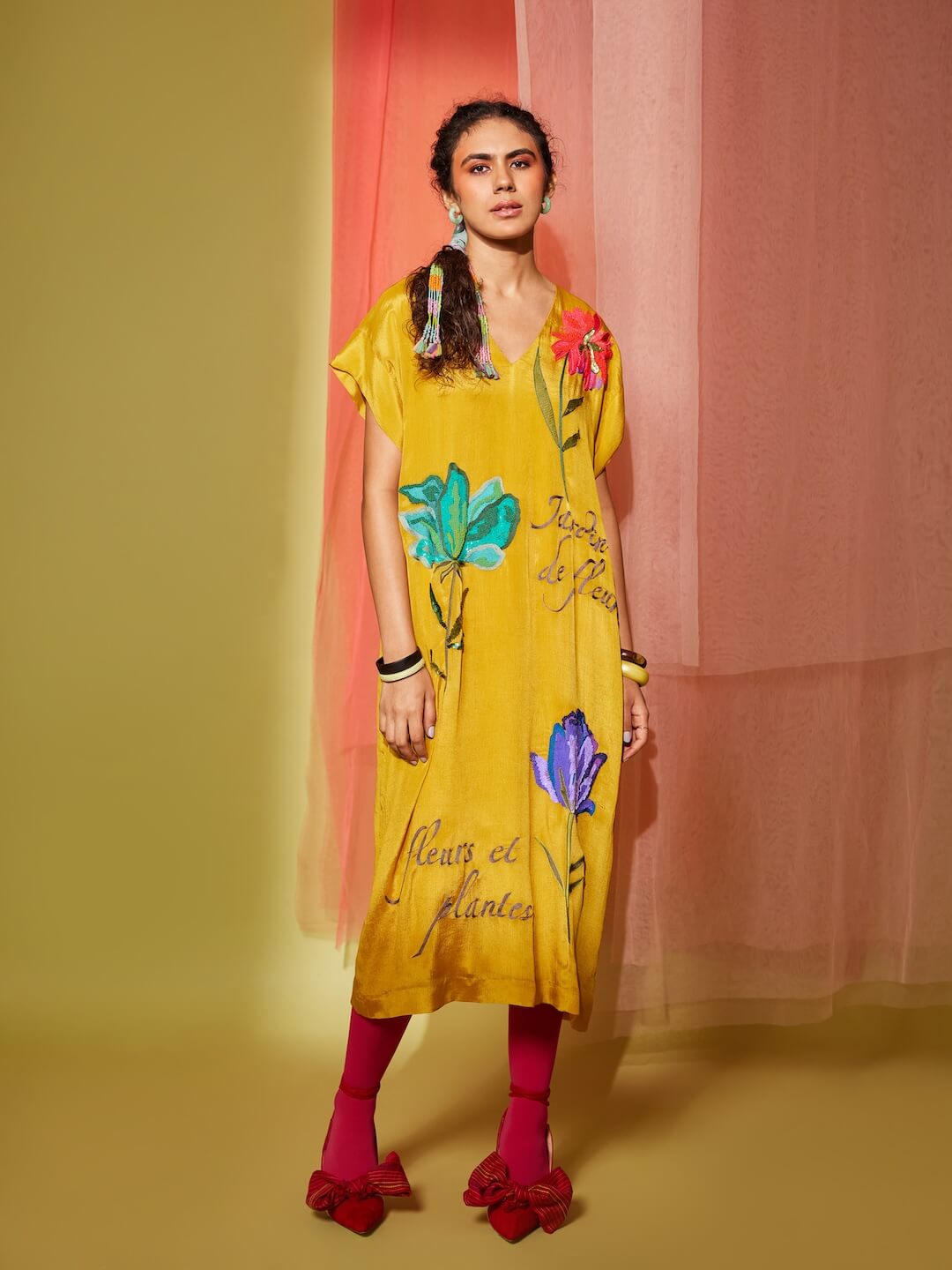 Big Flower Drop Shoulder Midi