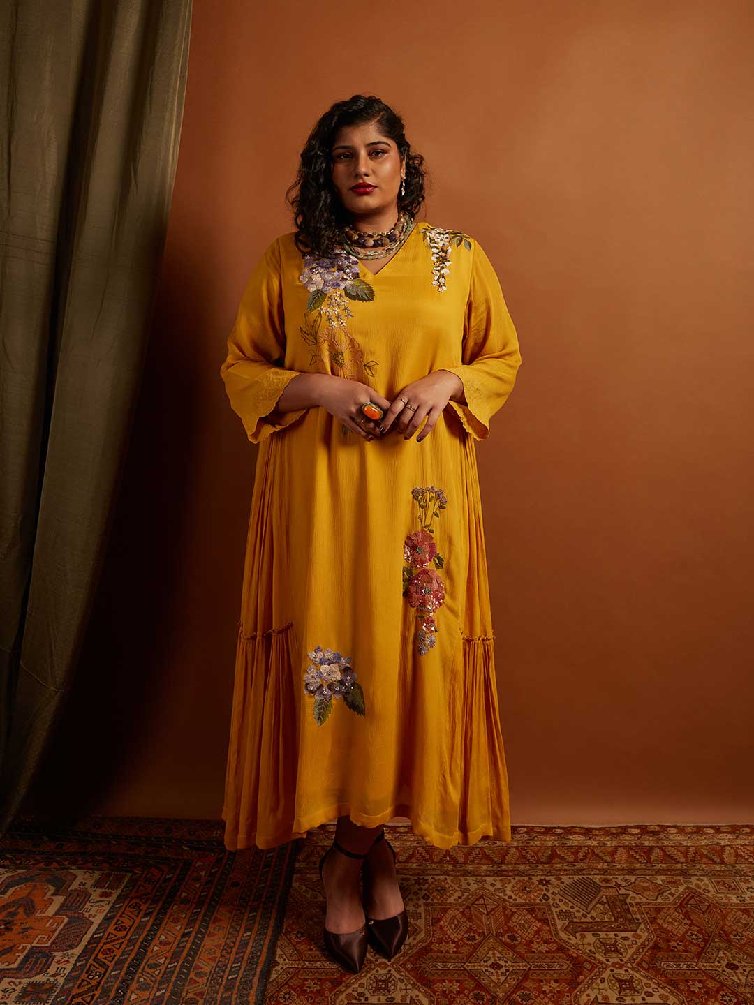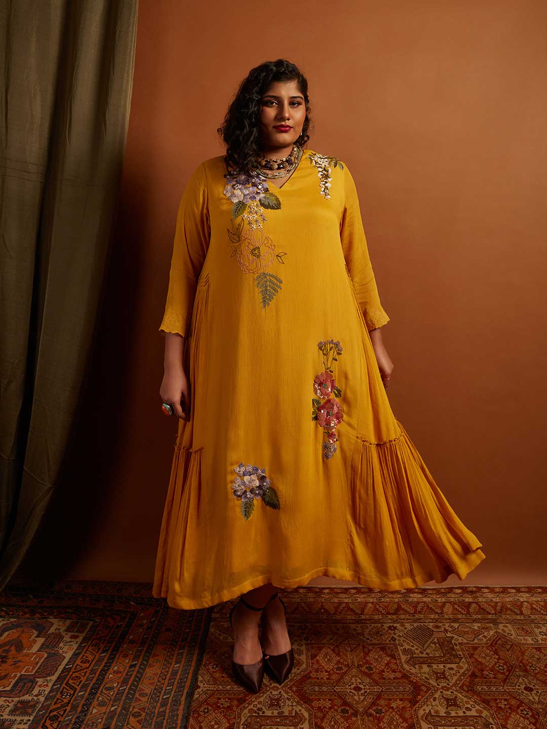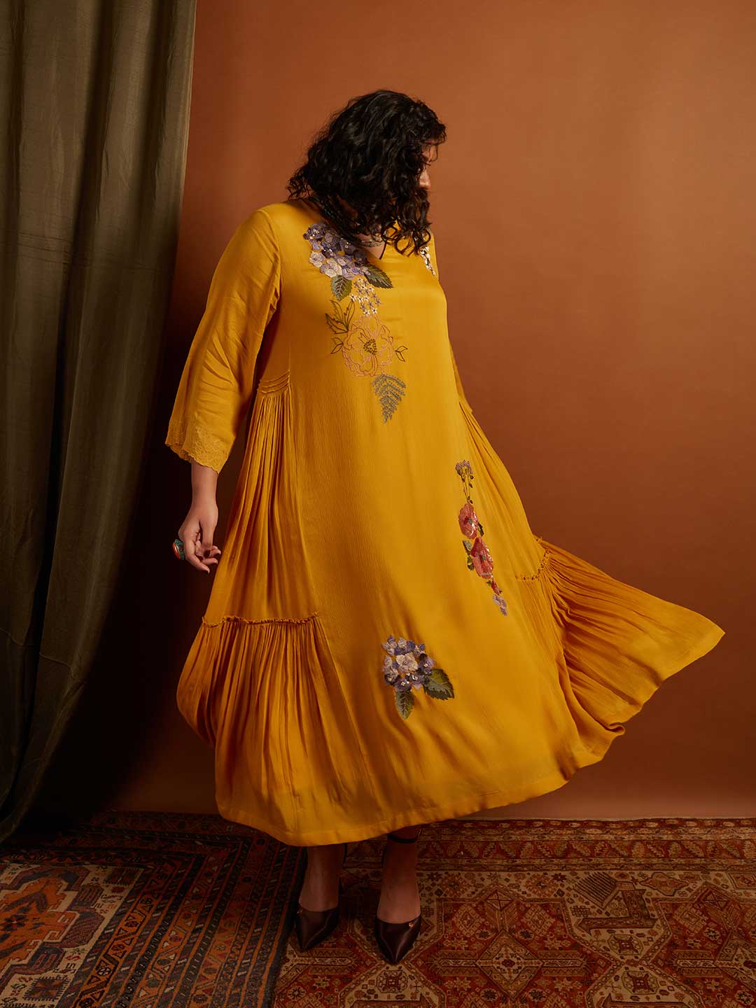 Hydrangea Emb. Side Panel Dress