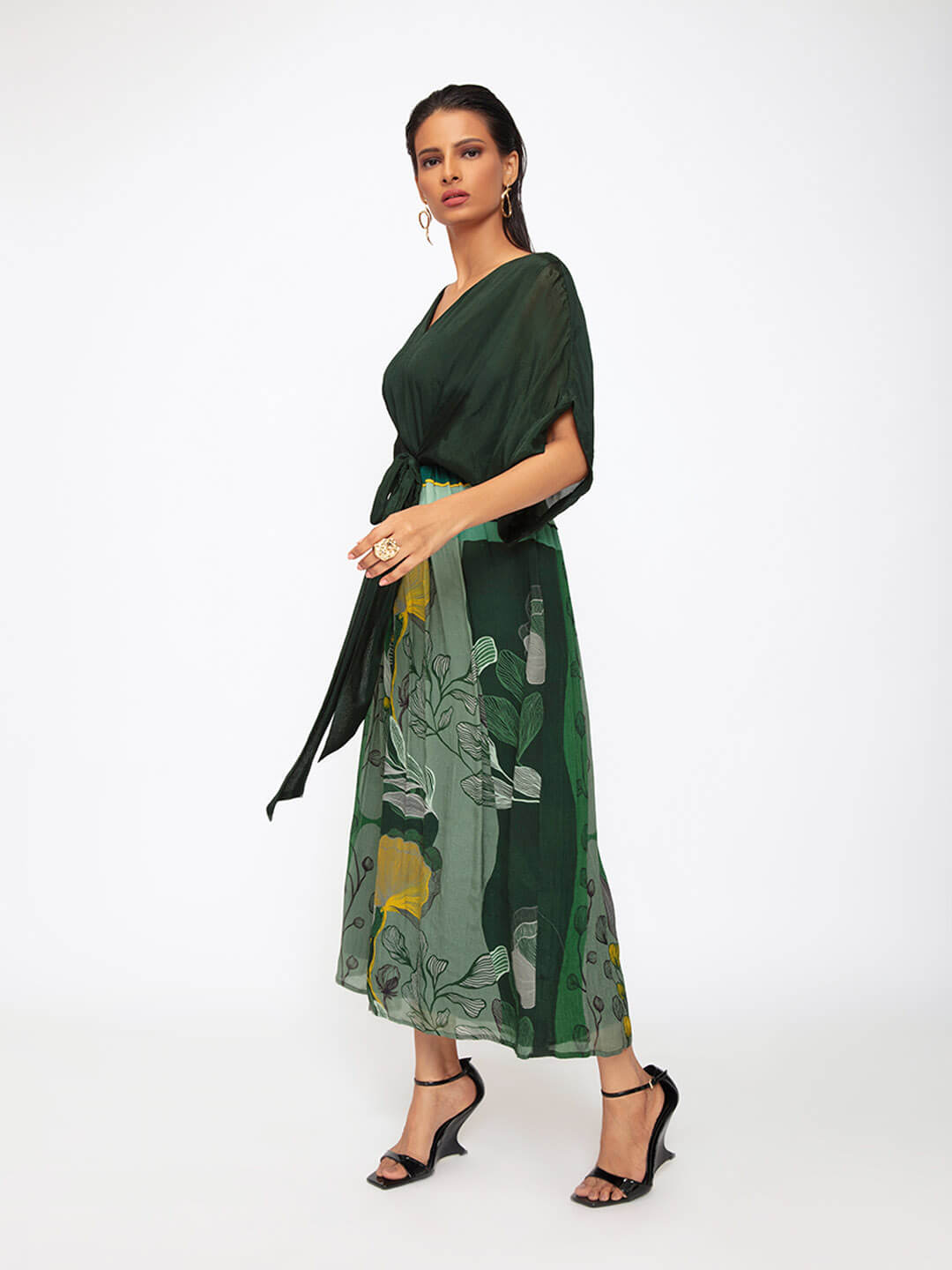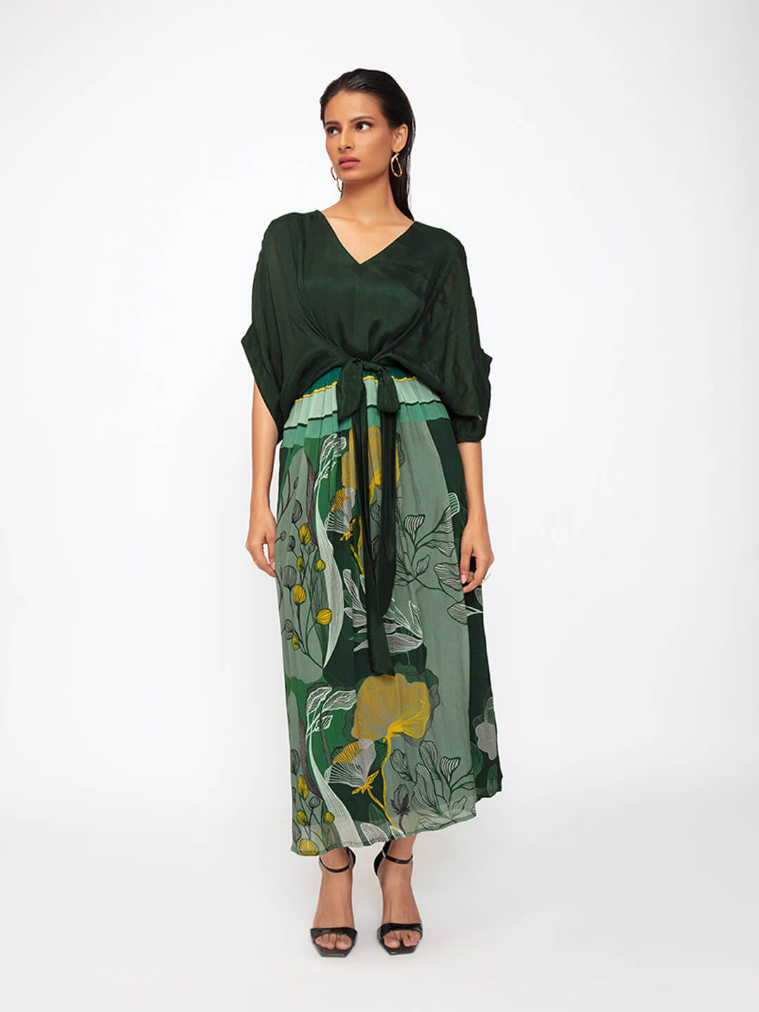Stylish and oh so comfortable. This midi dress is your perfect day to evening travel look. The kaftan top adds a hint of drama, with a tie up for a cinched waist.