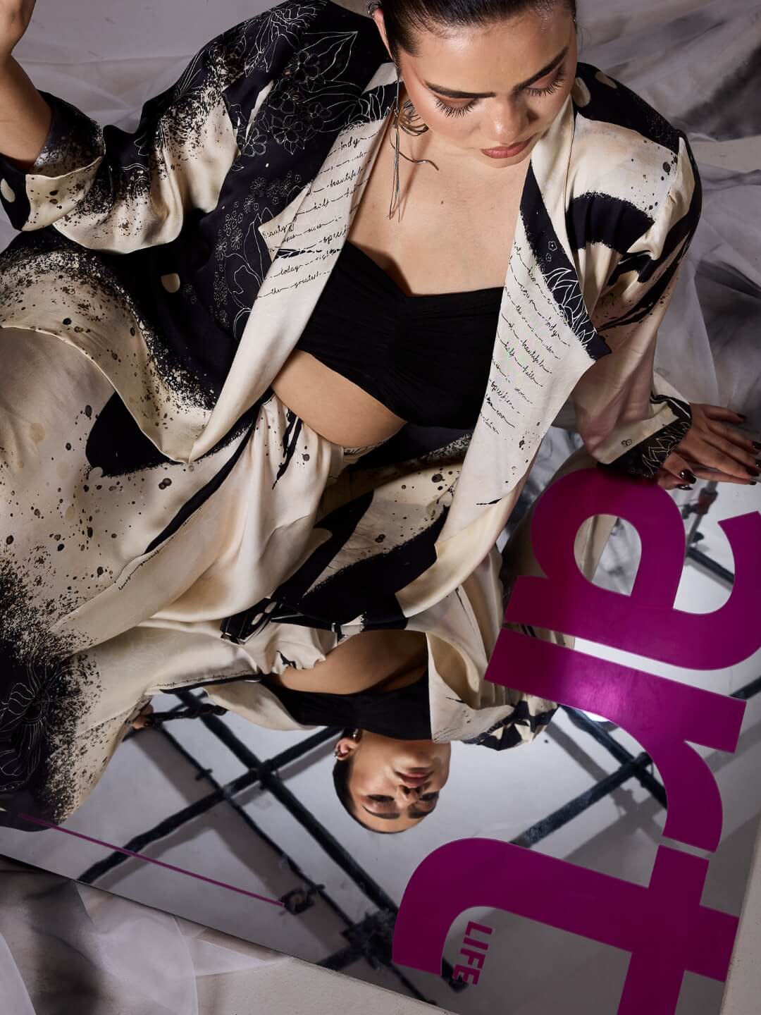 The monochromatic jacket is a versatile silhouette, fluid & chic perfect for brunch, dinner date, or your resort travels.