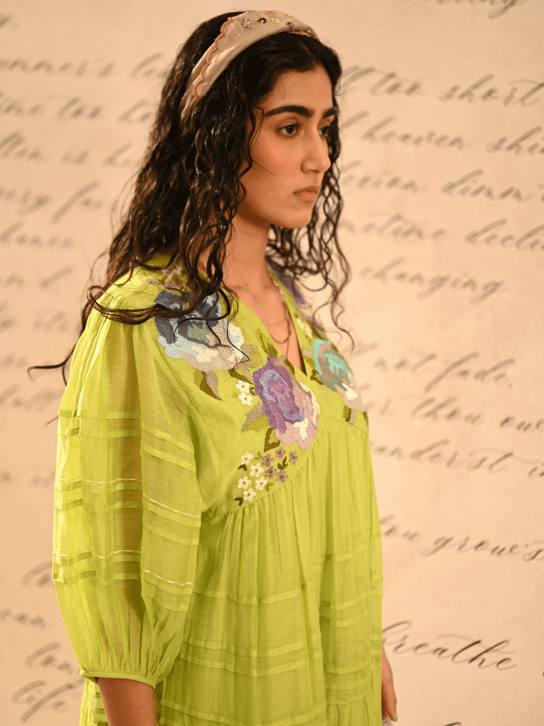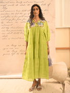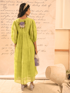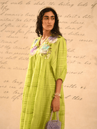 A summer dress that will make you swirl. The intricate thread hand embroidery, depicts the spring flowers, and the delicate pleat detailing add a soft texture to the dress. The dress is perfect for those summer brunches, resort travel. Style with tie up sandals, delicate jewellery and dewy make up.