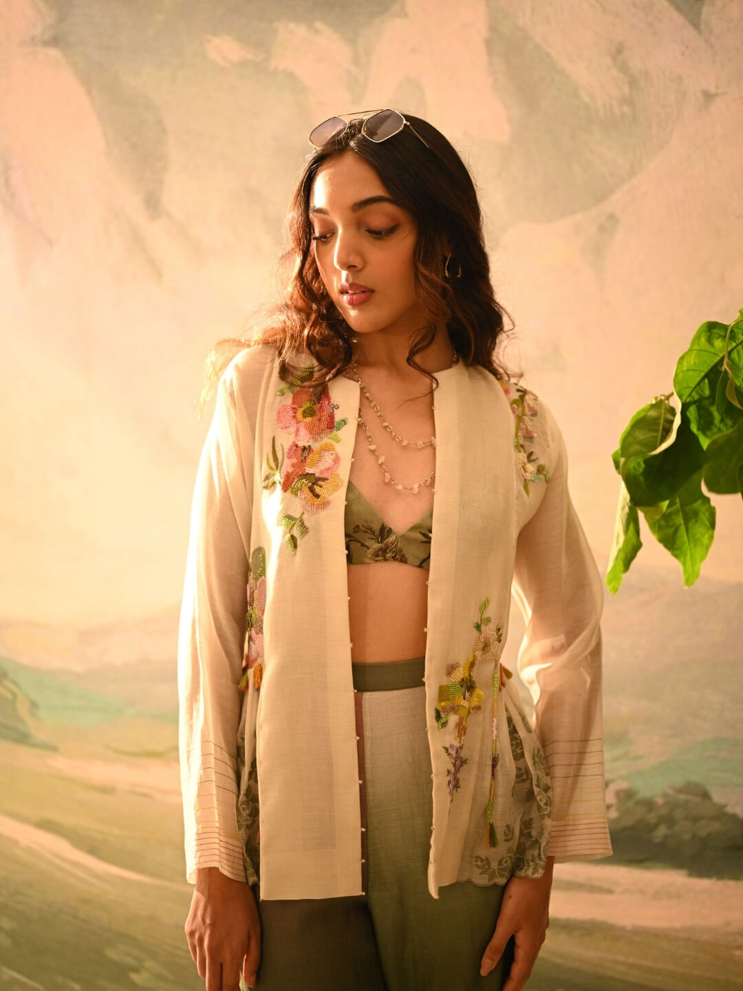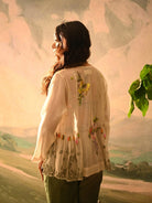 Intricate floral embroidery, in pastel hues with delicate pleat detailing, and a gathered back make this jacket the perfect romantic summer look.