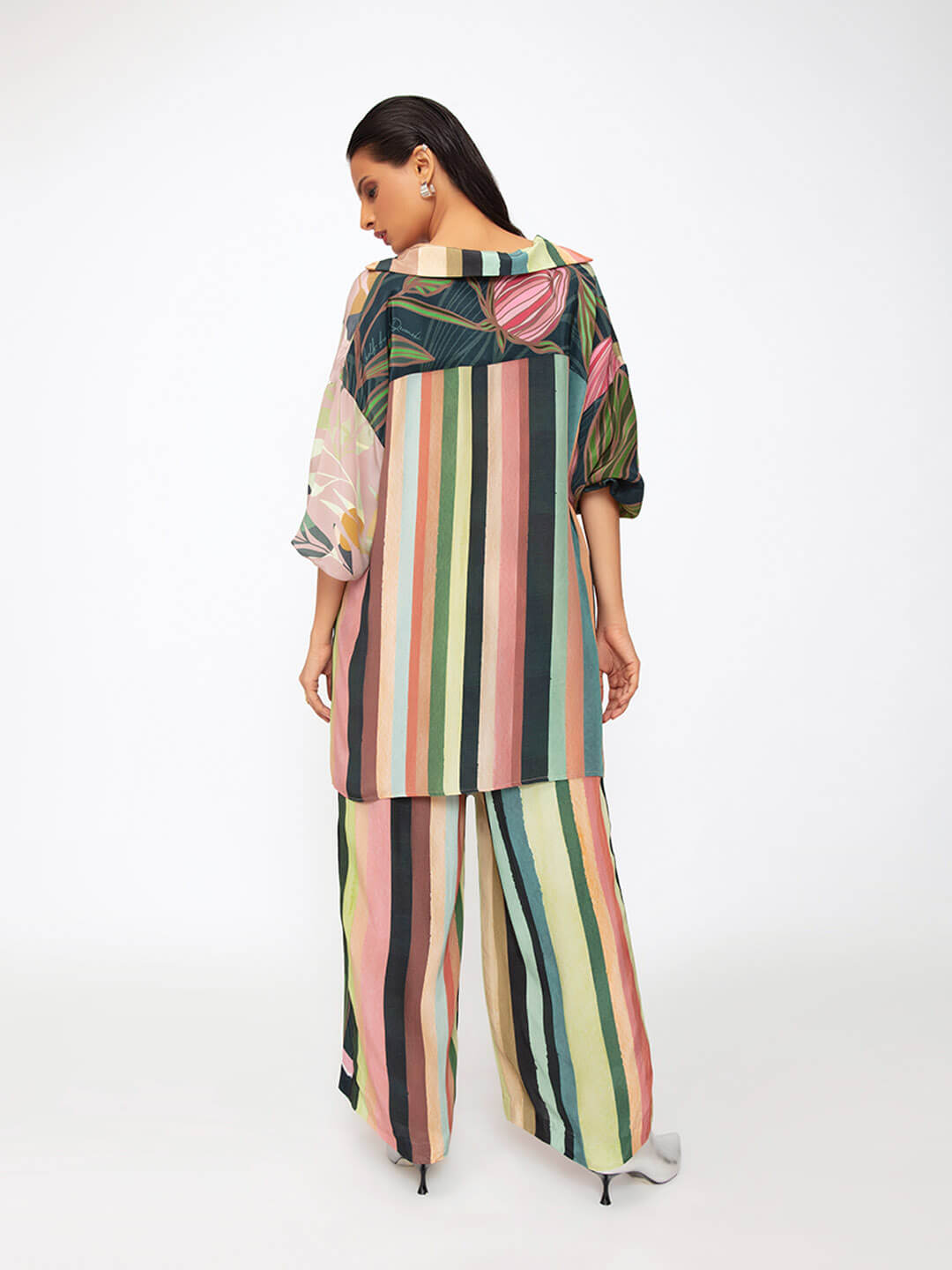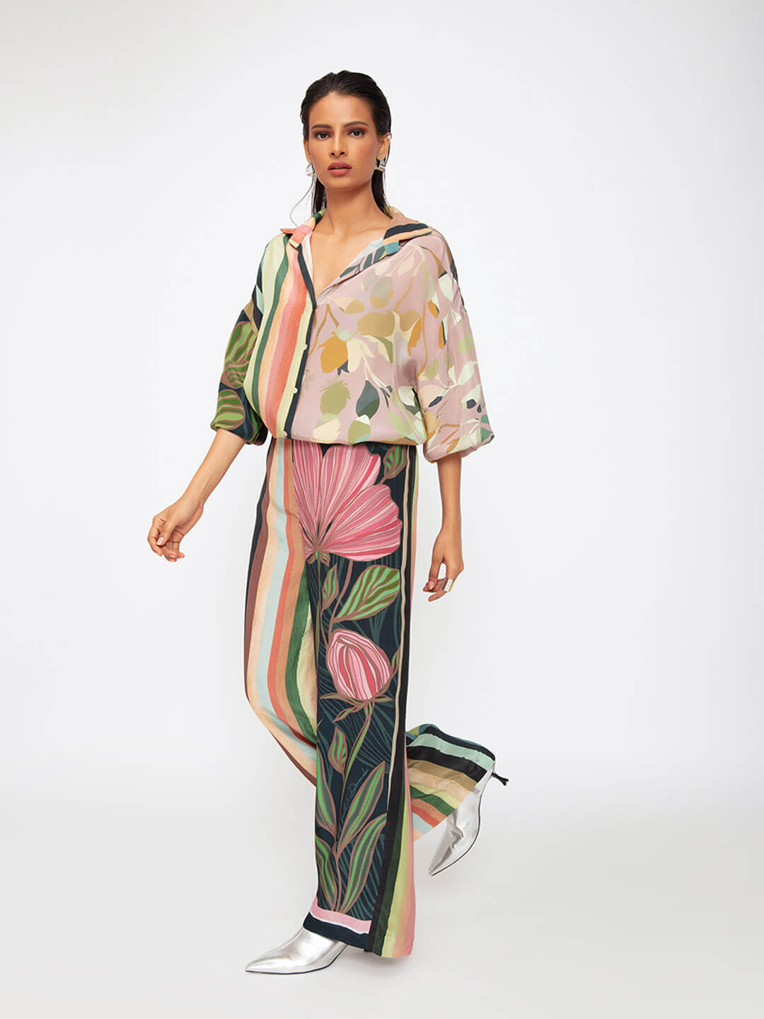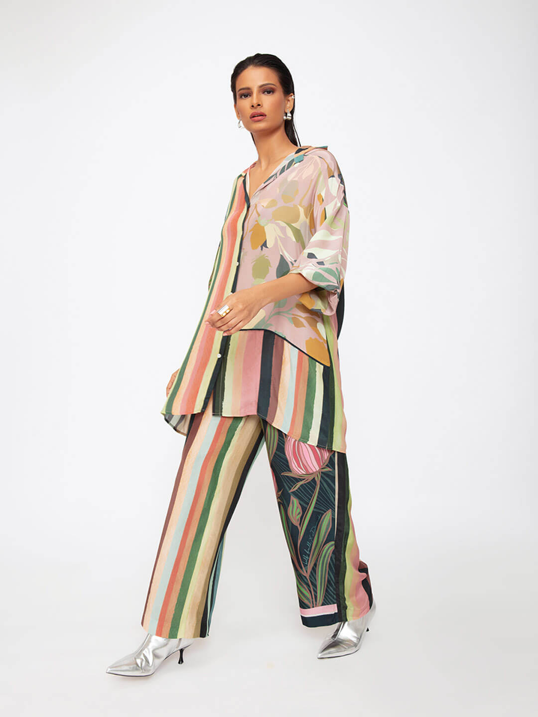 A statement shirt, in a mix of bold prints. Wear it for an evening out, travel, coffee date, it will be the most versatile piece in your wardrobe.