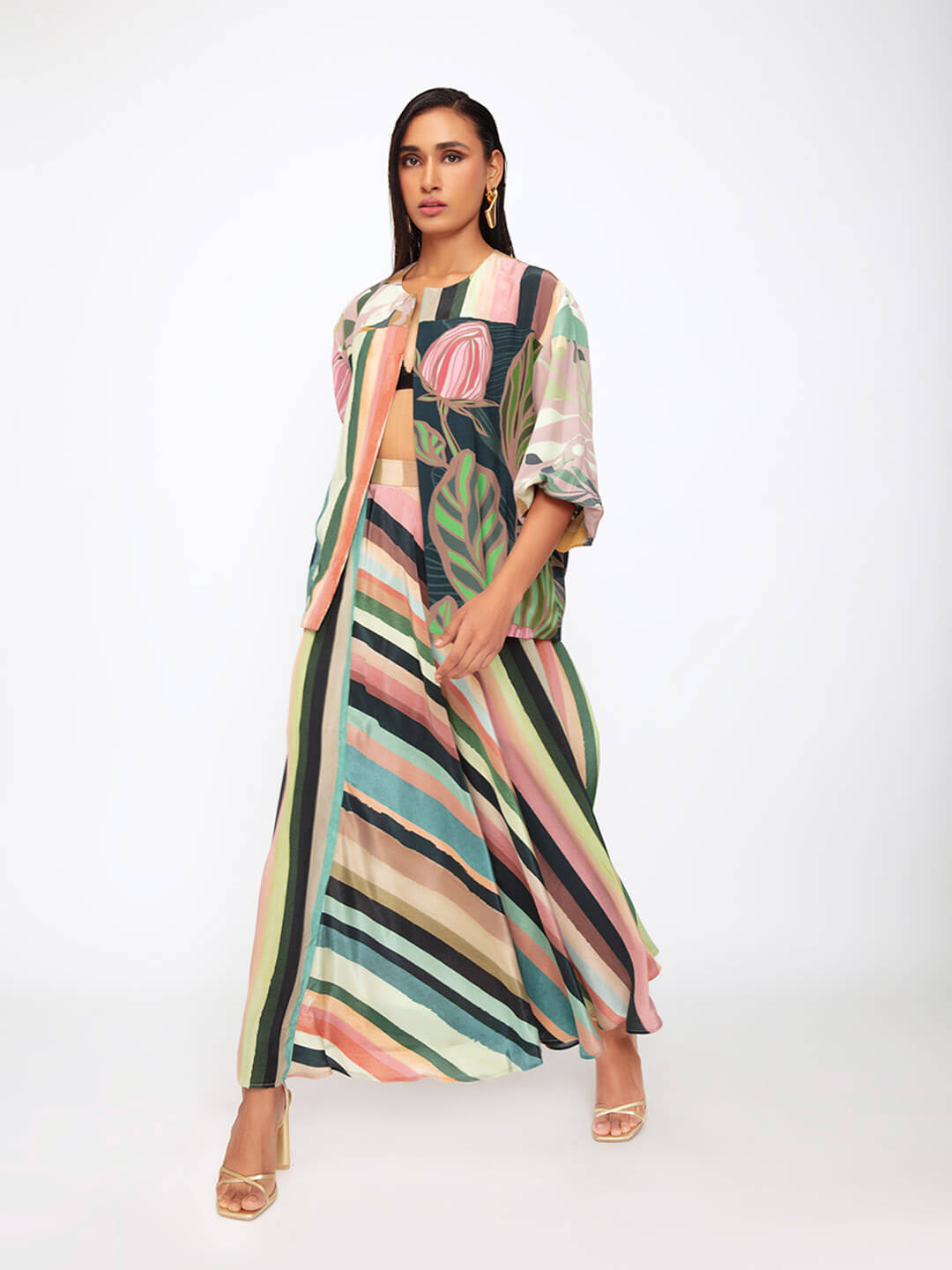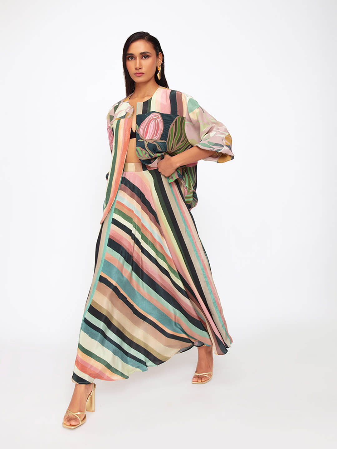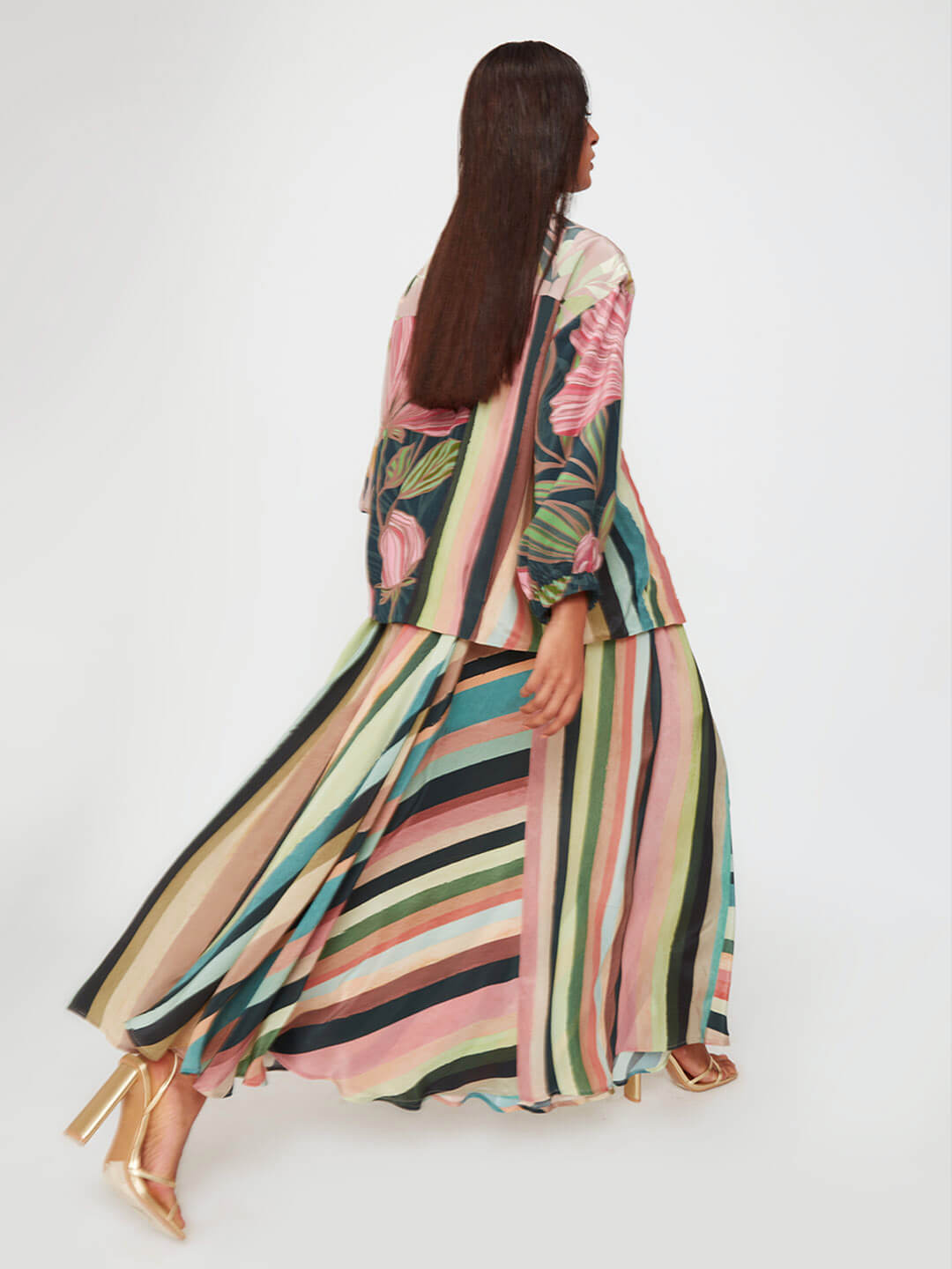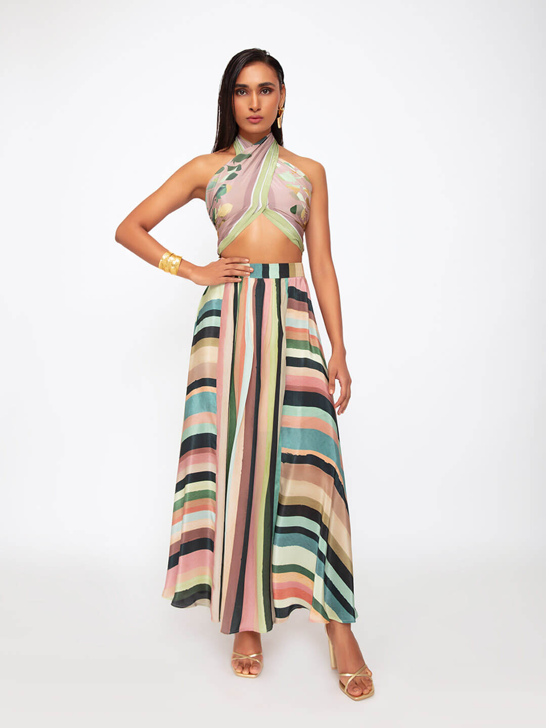 A play of bold stripes, on this high waist skirt, makes for a statement look. Wear it to a brunch, sundowner, or an evening out, it is a must have in your wardrobe.