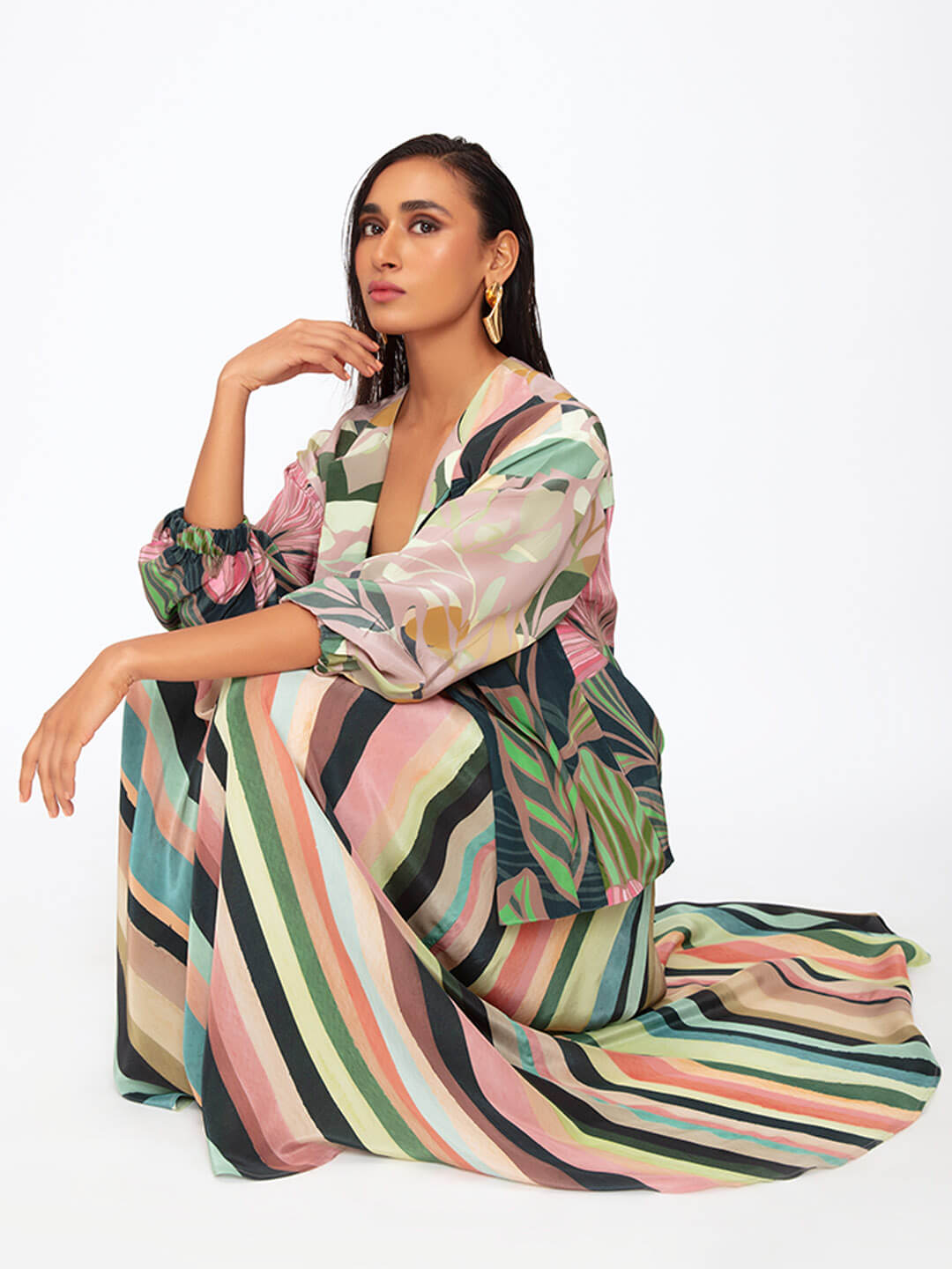 Styling: Style it with a crop top, camisole, or a bralette, and add tan heels or jewelled flats, gold hoops, and a hint of gloss on the make up.