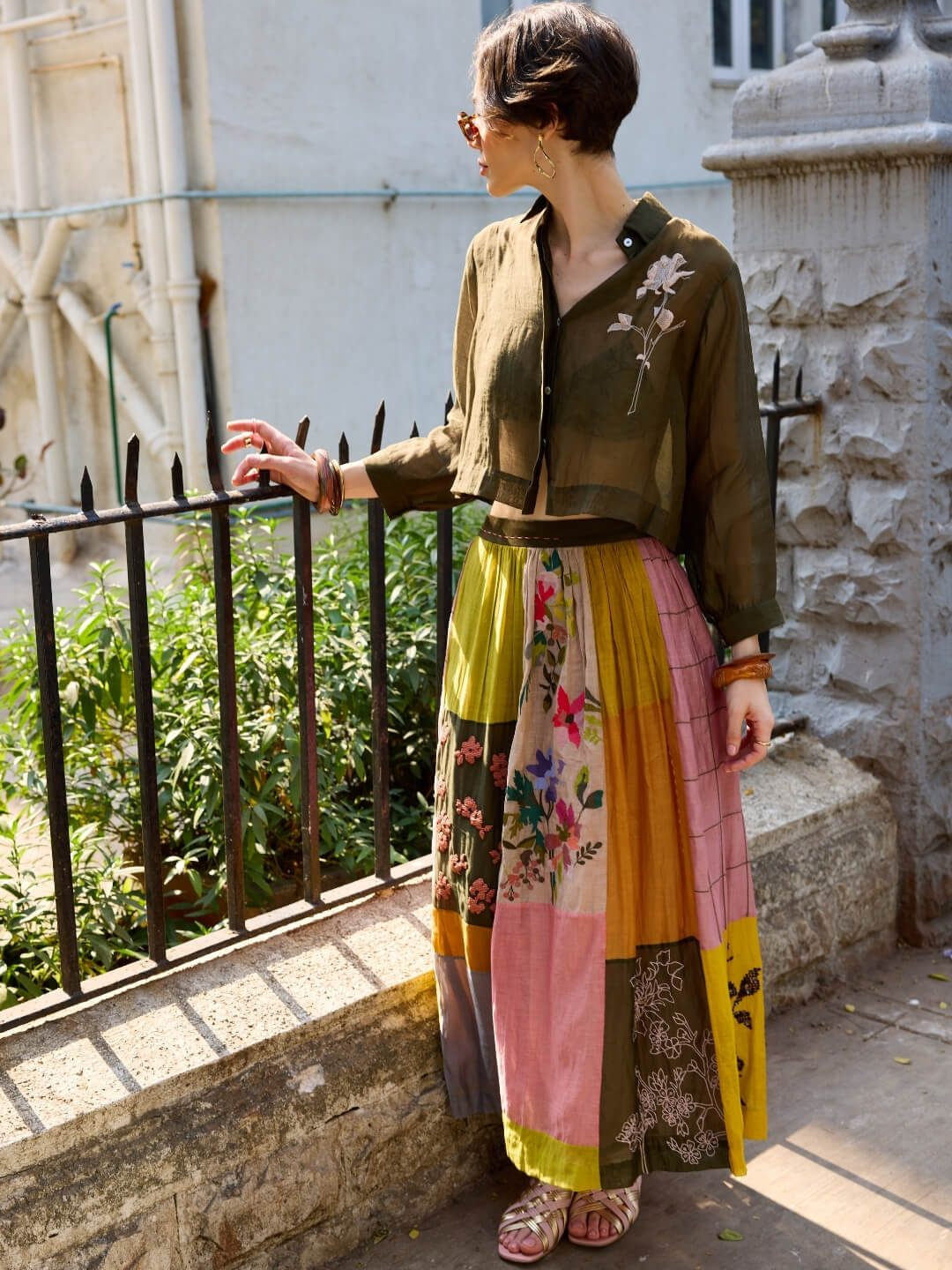 A classic oversized shirt, with pop hued flowers, to add the hint of quirk. Delicately embroidered like crayon art florals.