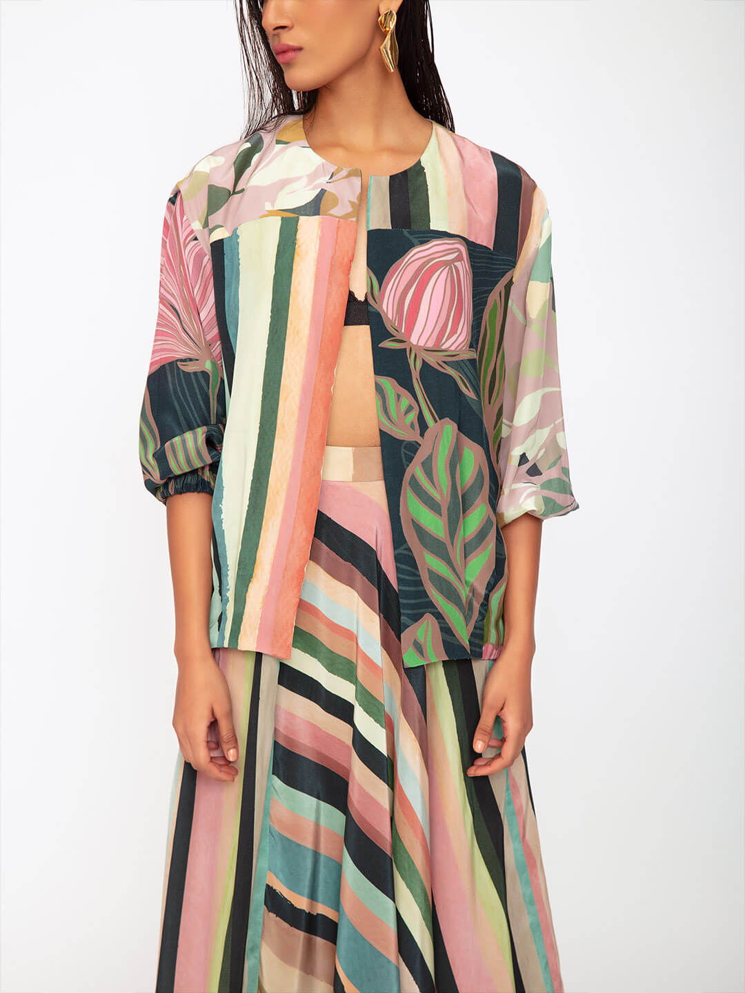 A statement bomber jacket, in a mix of bold prints. Wear it for an evening out, travel, coffee date, it will be the most versatile piece in your wardrobe.